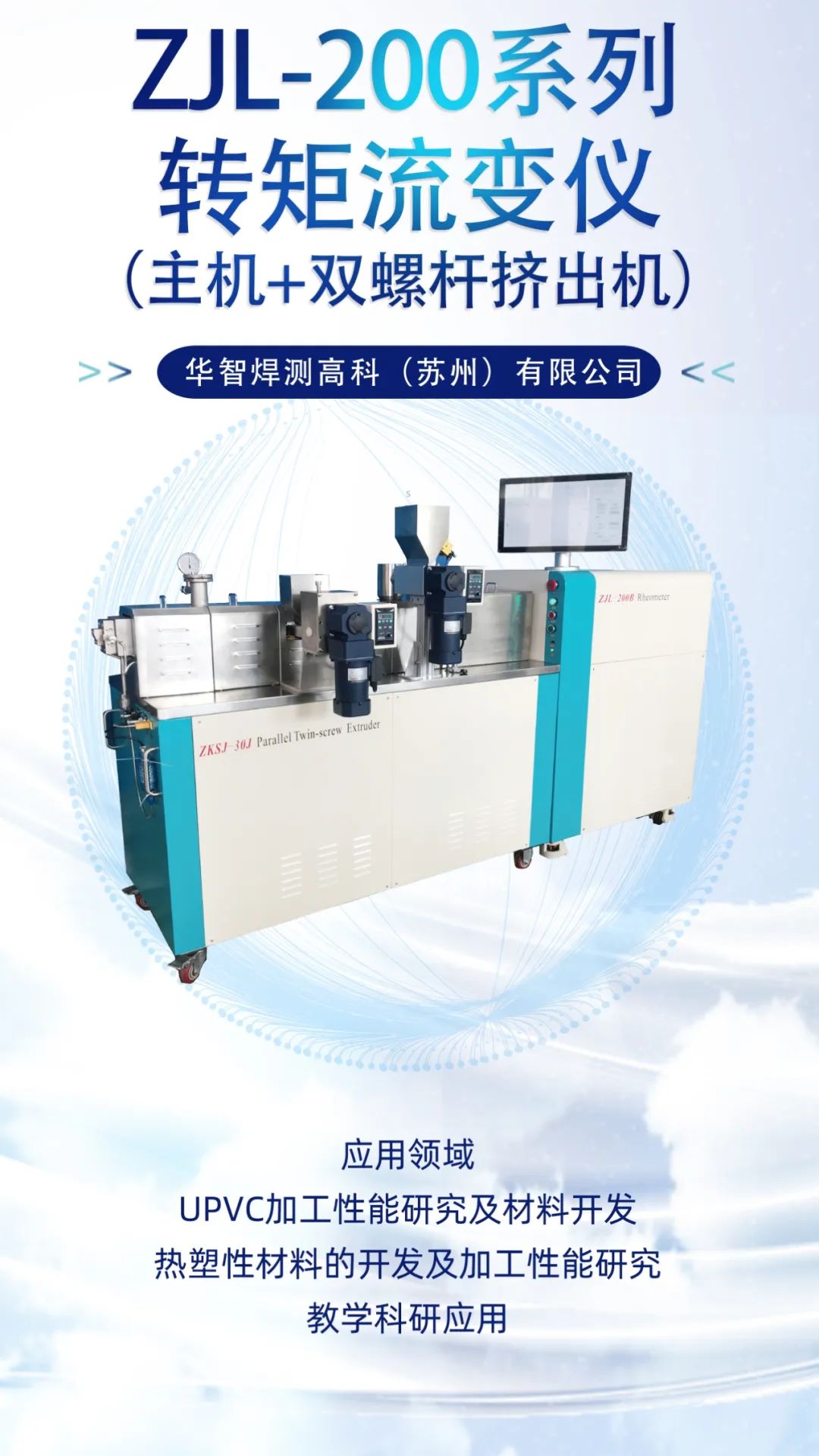 转矩流变仪在PVC材料的研发、生产和质量控制中扮演着极其关键的角色。这主要是因为PVC是一种热敏性塑料,其加工行为(熔融、流动、稳定性和降解)对温度、剪切力和配方(如稳定剂、润滑剂)非常敏感。转矩流变仪能有效地模拟实际加工条件(如混合、挤出、密炼),并提供实时数据来评估这些因素。